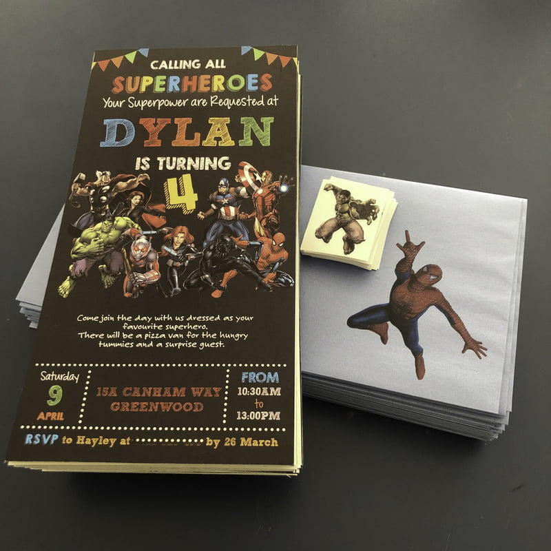 The perfect invitation set for a perfect Party. Invitations are printed in standard sizes with the option of a fridge magnet at the back, a branded envelope and an envelope seal. It does not include the invitation's artwork but we will take elements of the invitation to use on the envelope and envelope seal. Printed on a single side only.