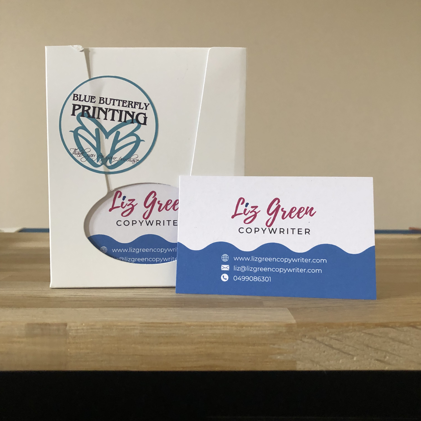 Make a great first impression with your professional business card. Our standard choices will be suitable for most business owners and come at a great price. Each card is 90x55mm in size which is made to impress. Make a great first impression with your professional business card. The standard choices will be suitable for most business owners and come at a great price. Each card is 90x55mm in size which is made to impress. The cards come in 3 different weights namely 350gsm, 400gsm and 450gsm. Laminate choices include Matt, Gloss and Velvet. The Matt and Velvet 400+gsm cards have the additional option of adding Scodix, Spot UV, Silver or Gold Metal. The 350gsm Gloss and Matt cards have the option to be laminated on a single side only which is ideal if it needs to double as an appointment or loyalty card. There is no additional cost to print in colour on both sides and can be shipped Australia wide. For custom sizes, please email us with more details at hello@bluebutterflyprinting.com.au. This is a custom item and not returnable. Please follow the print-ready guidelines to avoid any additional cost. Template to assist with artwork design below. The best file type to use is a vector PDF with trim marks in the size it needs to be printed. Remember to expand or outline text and the images need to be at least 300DPI to produce a quality print. Vector images are always the best. Other file formats: AI, EPS, SVG, PSD, PNG.