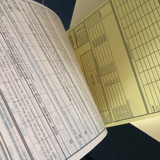 Non-Carbon Duplicate, Triplicate or Quadruplicate Books. These books are still very popular with trades, mobile and sales personnel, keeping all information in a single place. NOTE: PRINT SINGLE COLOUR ONLY FROM LIMITED PANTONE The artwork needs to clearly display where sequential numbering needs to be placed and where the Perforation line (left or top) needs to be made. Allow for a 10mm safe area where the Perforation line is placed and 5mm for the rest. Minimum order 10 Books Please request a template for the artwork if required.